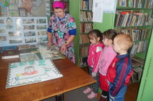 Китапханәгә экскурсия. 27.04.2015 Әле укый белмәсәк тә, "Туган телне" җырлыйбыз, Бу- Тукай абый бүләге, Иң гузәл бер җыр дибез! Балалар белән Габдулла Тукай китапларыннан төзелгән күргәзмә карадык, әкиятләре һәм шигырьләренә ясалган иллюстрацияләр белән таныштык.
