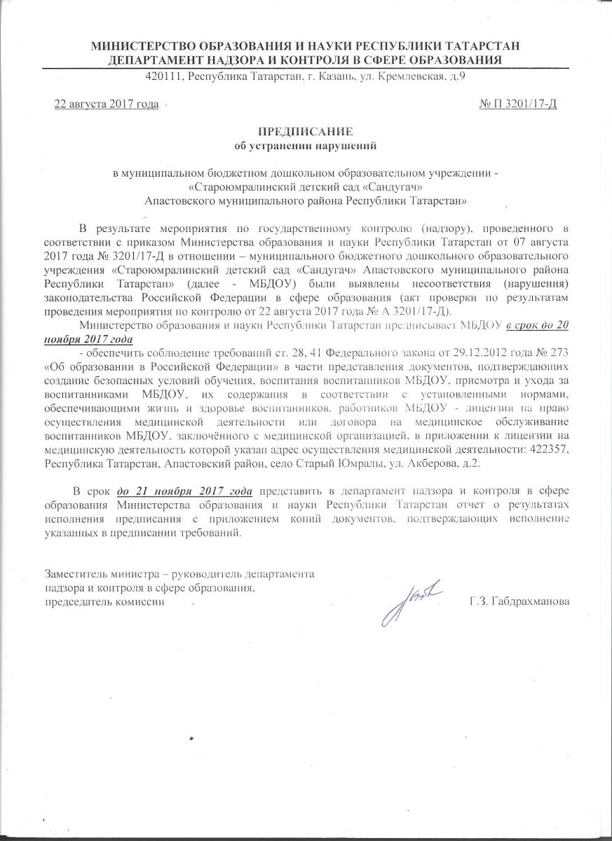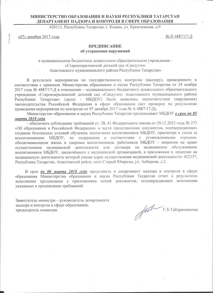 Преписания органов, осуществляющих государственный контроль (надзор) в сфере образования, отчеты об исполнении