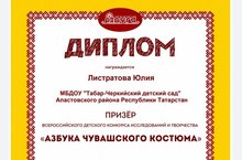 Листратова Юлия стала призером Всероссийского детского конкурса исследований и творчества "Азбука чувашского костюма". Поздравляем!