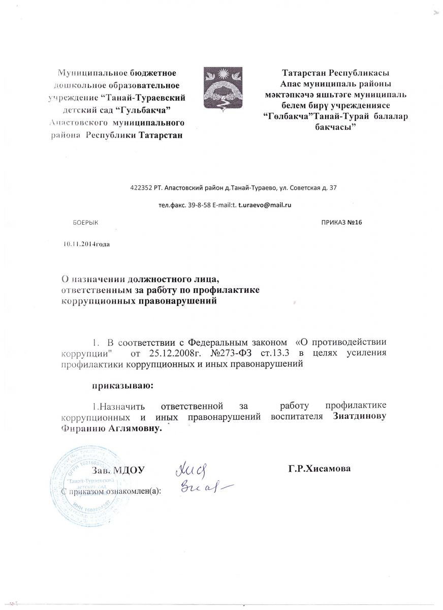 | Адрес: | 422352, Республика Татарстан, Апастовский район, д. Танай-Тураево, ул. Советская, д. 37 |