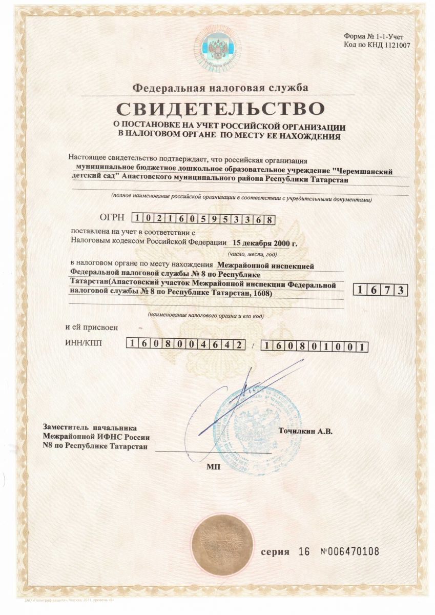 Короткое название: МБДОУ «Черемшанский детский сад» Апастовского муниципального района РТ