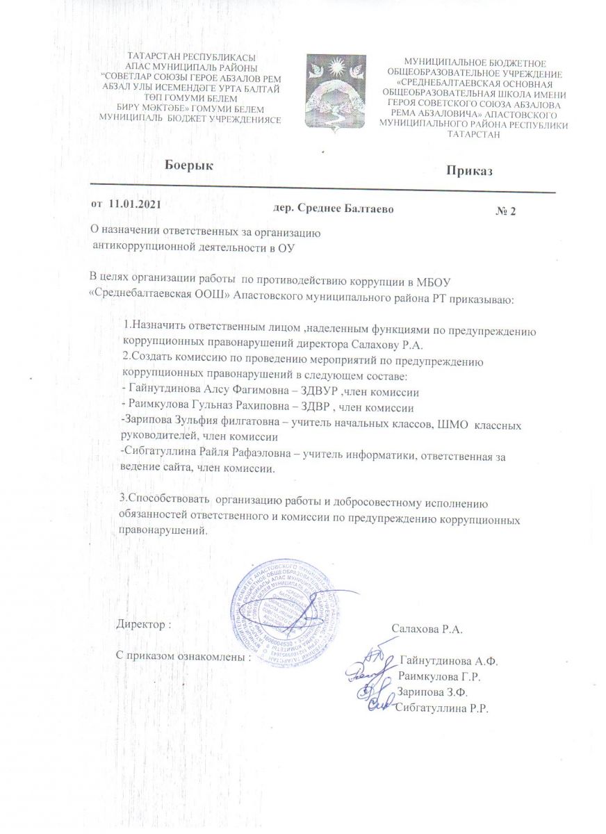 Приказ о назначении ответственных за организазию антикоррупционной деятельности в ОУ