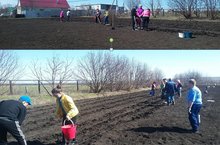 27 апреля учащиеся и уителя на пришкольном участке посадили картофель