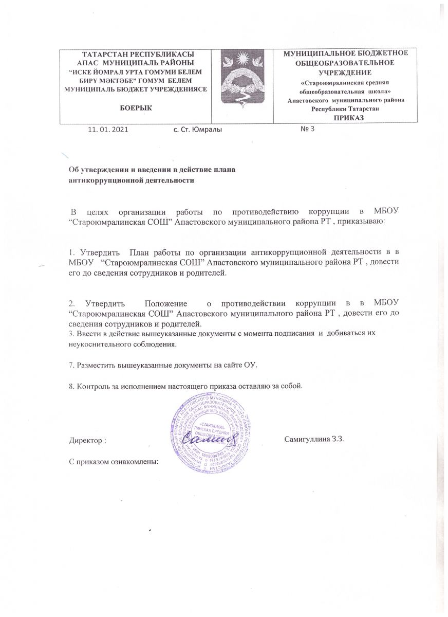 план мероприятий по антикор.деят.в Староюмралинской СОШ 2021-2021уч.г