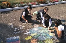 В связи с 14-летием Бесланской трагедии и Днём солидарности в борьбе с терроризмом среди 6 классов был проведён конкурс рисунков на асфальте "Мы за мир на планете!". Победила дружба!!!