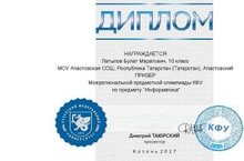 Ученик нашей школы Латыпов Булат учавствовал в Региональном онлайн туре олимпиады КФУ по 4 предметам: информатика, математика, астрономия и экология и стал призером по всем этим предметам. Очные туры будут проводиться в г. Казани январе - феврале 2018 г.