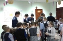 Ученики 2а класса у Дедушки Мороза в районной детской библиотеке. Утренник получился замечательный, дети очень довольны.