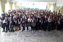 Ученики всех классов подготовились ко дню Конституции РФ. Все пели гимн России, в руках держали государственную символику, а из шаров сделали Российский триколор.