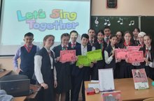 С целю повышения интереса к изучению английского языка и развития творческих способностей учащихся, в 7Б классе был проведен конкурс песен на английском языке "Let's sing together!" ("Давайте споем вместе!"). Мероприятие проводилось в рамках недели английского языка. Ребята представили любимые песни о дружбе, о любви и из кинофильмов. Дети узнали про известные английские группы, послушали и спели их песни.