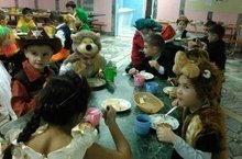 Сегодня у первоклассников был вкусный сказочный завтрак. Вкусно поели и Мишка, и Крокодил Гена, и ежики, и собачка, снежинки и Ковбой. У них сегодня новогодний бал маскарад.