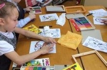 Ученики 1-а класса под руководством Нургалеевой Р.Ф. делают картины из пластилина для мам. Работа трудная, но очень интересная