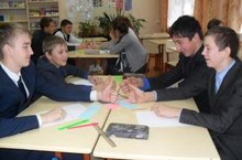 Ученики 1-а класса учатся работать в группах. Кажется им это нравится. Искать ответ на вопрос вместе лучше...
