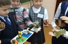 У учеников 1-а класса получились славные животные из шишек ели и сосны.