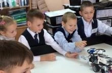 У учеников 1-а класса первая встреча с роботами. Восторг и желание!! Очень хочется чтобы роботы выполняли разные команды. -