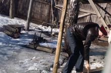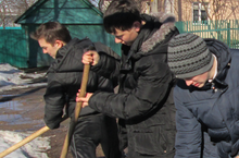 Ученики 11 а класса в субботу после уроков оказали помощь очистили от снега и льда проход во двор.
