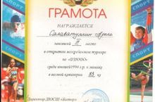 Салаватуллина Аделя занявшего 3 место в зональных соревнованиях по дзюдо (33 кг) проходившем в городе Буинск