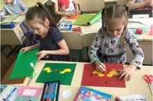 В школе будущих первоклассников, на творческом занятии, сегодня дети выполнили аппликацию. Все остались довольны! Молодцы!