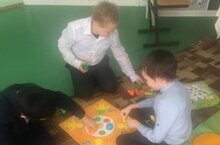 В нашей школе логопедические занятия проходят увлекательно. В конце каждого занятия дети получают увлекательный бонус в виде игры. На этот раз это напольная игра "Улётные приколы": задача ребят поймать попрыгун на пружинке и получить деталь (часть тела) человечка. Тот кто первый соберёт человечка, тот и победитель.