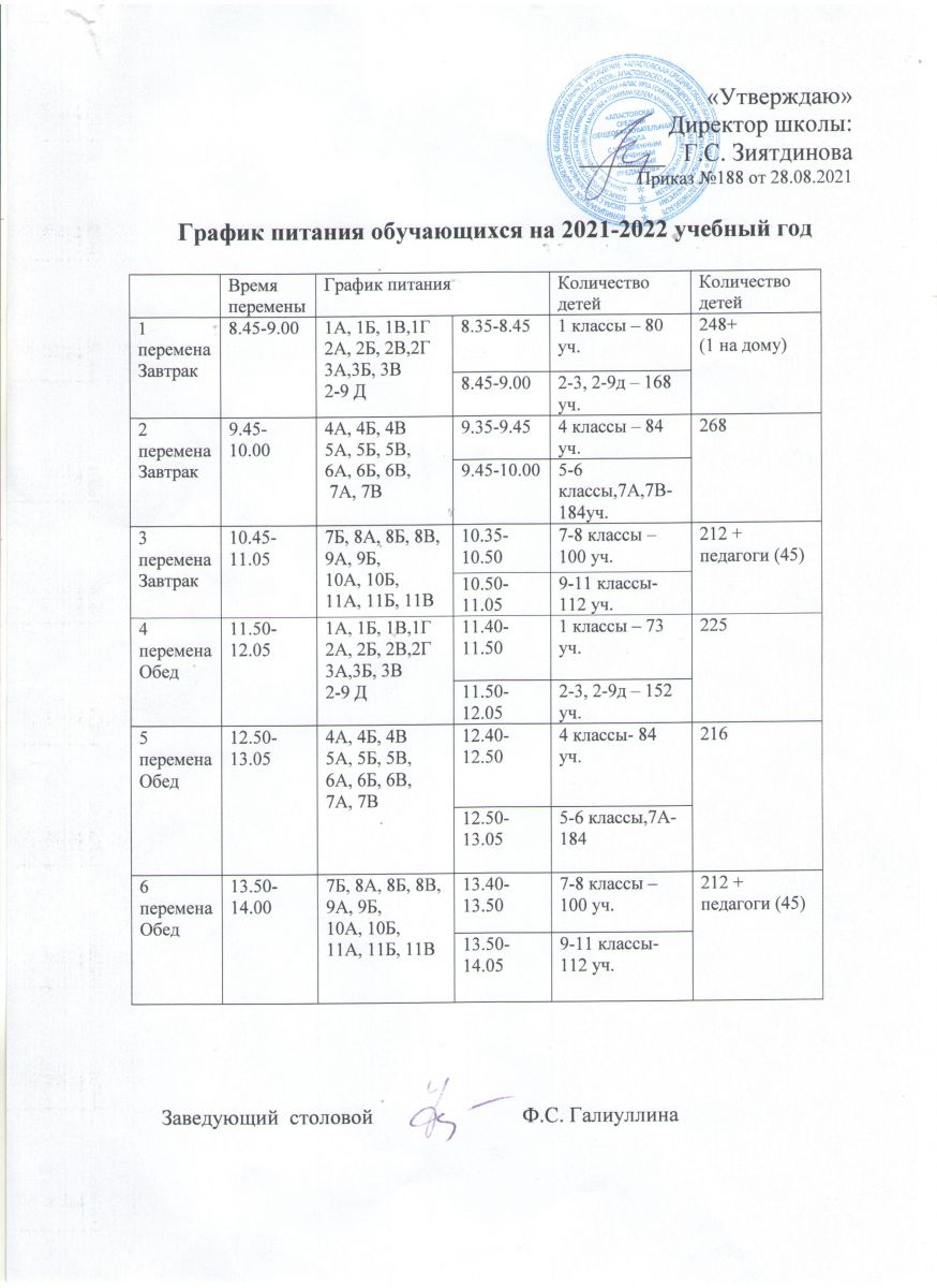 График питания обучающихся на 2021-2022 учебный год