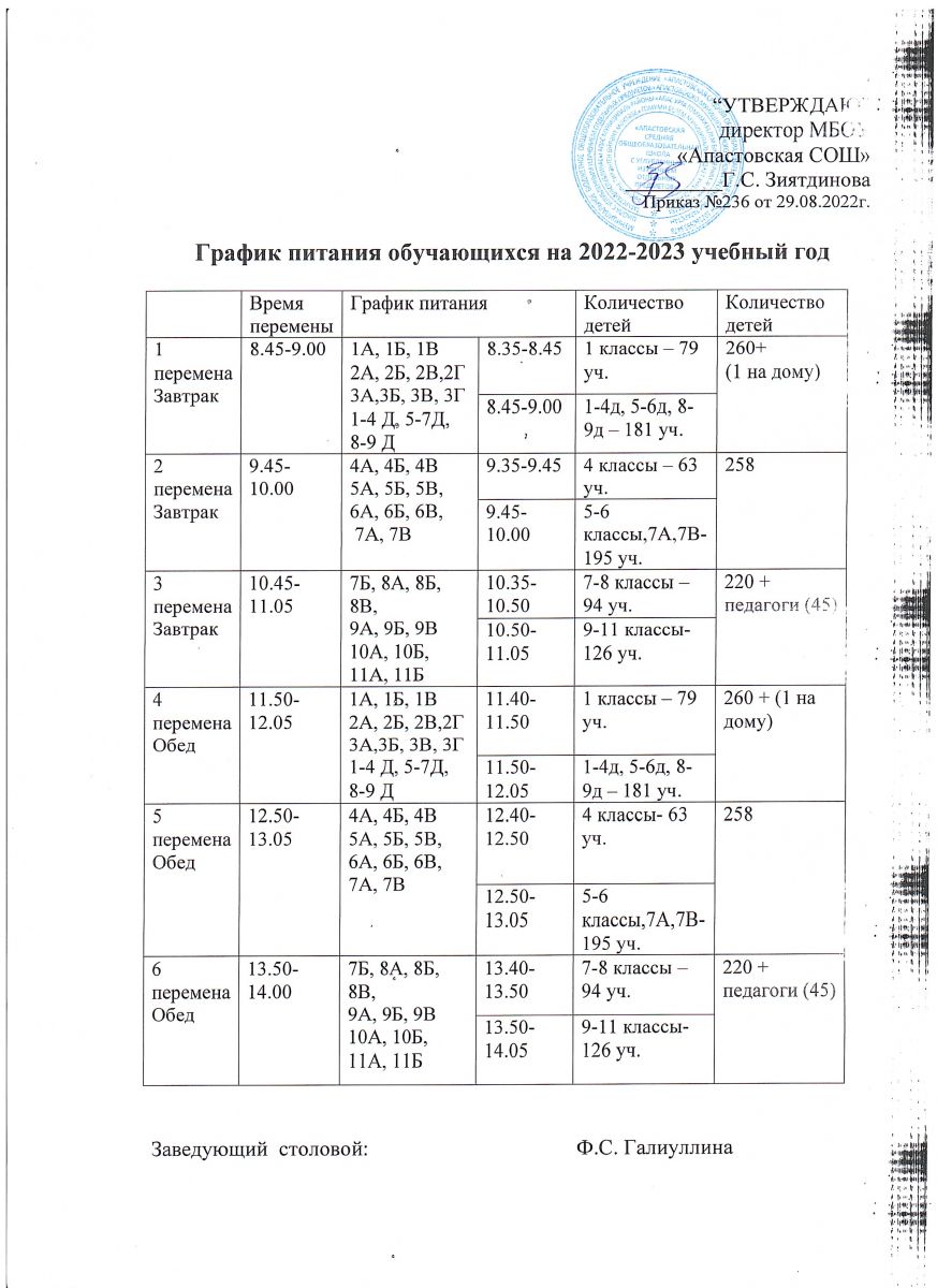 График питания обучающихся на 2022-2023 у.г
