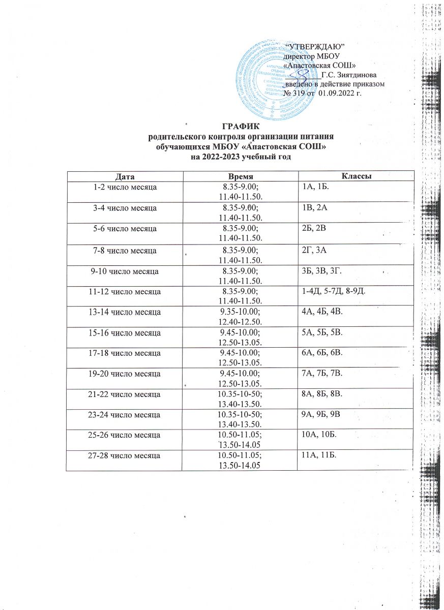 График родительского контроля по организации питания - 2022-2023
