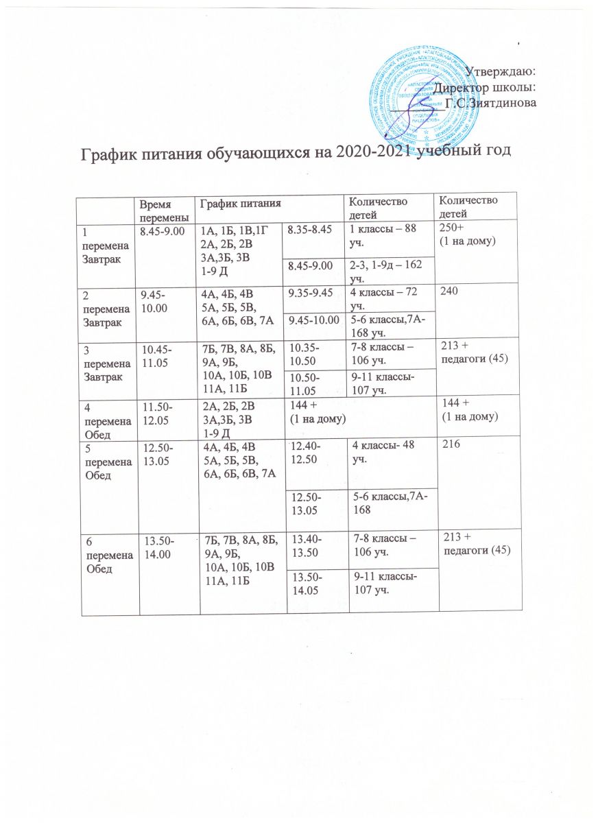 График питания учащихся на 2020-2021 учебный год