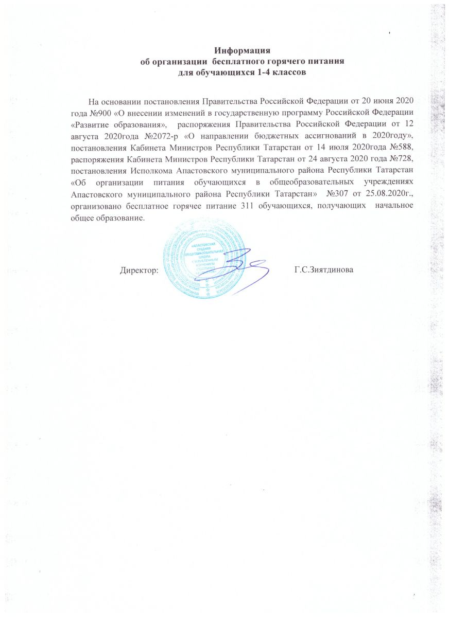 Приказ об организации питания обучающихся МБОУ Апастовская СОШ