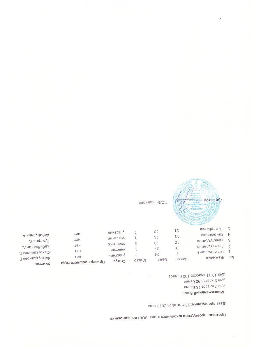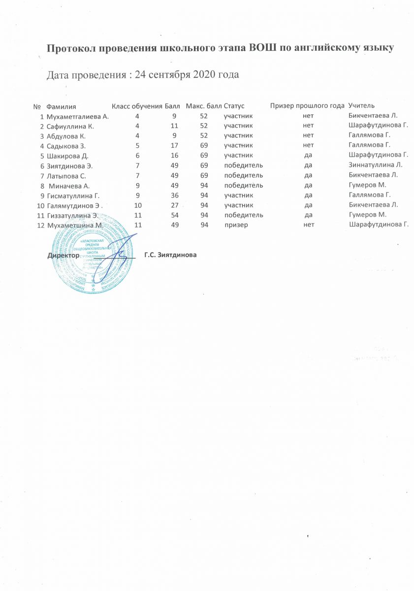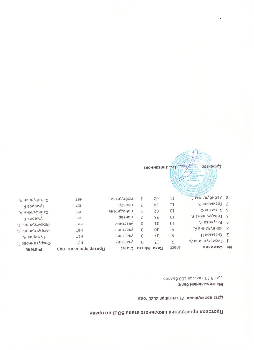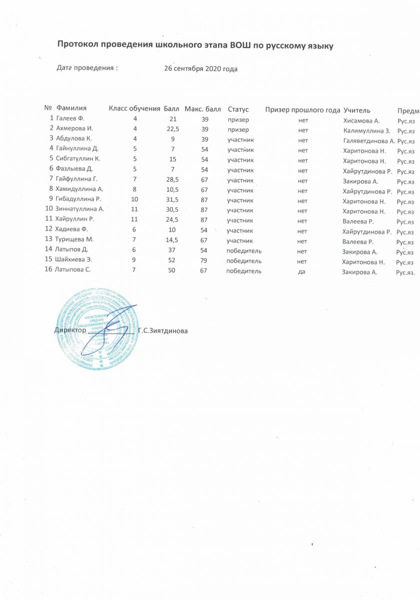 протокол школьного тура олимпиды по русскому языку 5-11 кл.