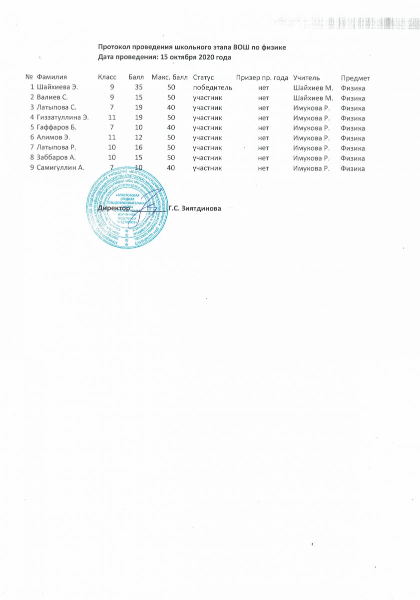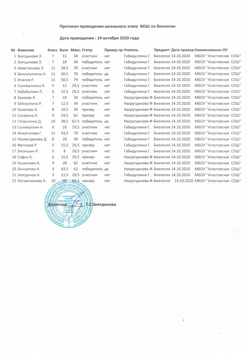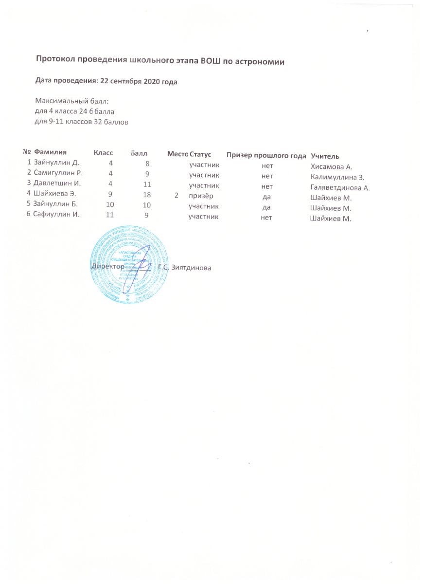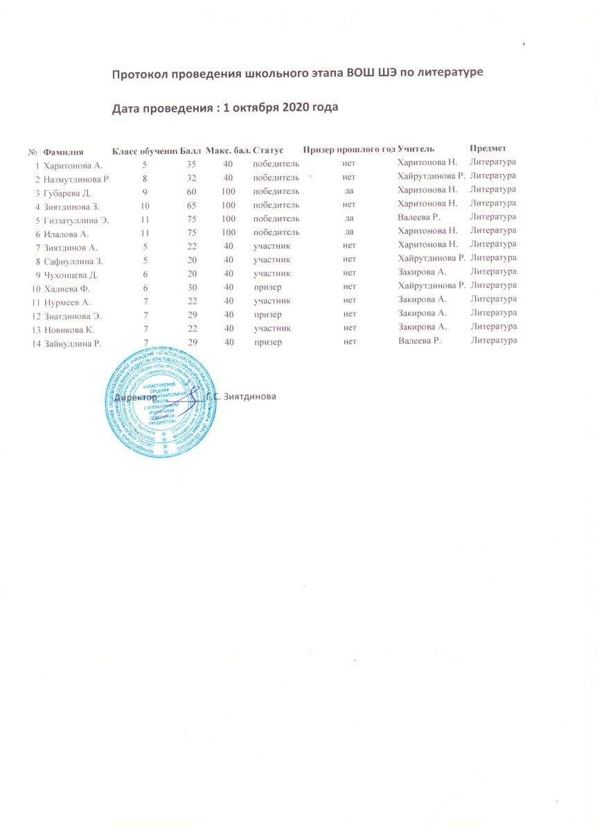 протокол школьного тура олимпиды по русскому языку 5-11 кл.