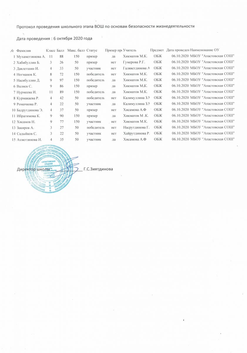 протокол школьного тура олимпиды по по ОБЖ (нач.кл.)