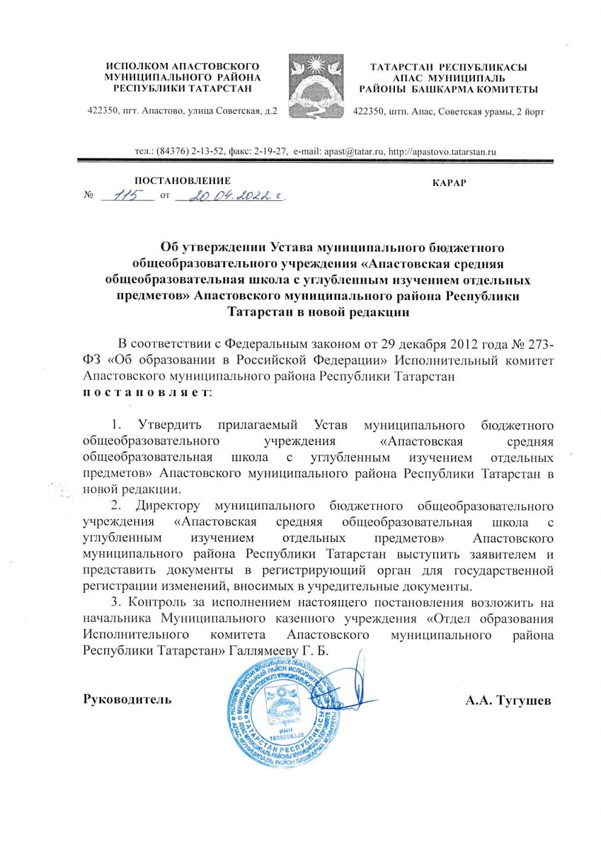 Муниципальное бюджетное общеобразовательное учреждение «Апастовская средняя общеобразовательная школа с углубленным изучением отдельных предметов» Апастовского муниципального района РТ / Татарстан Республикасы Апас муниципаль районы «Апас урта гомуми белем бирү аерым фәннәрне тирәнтен өйрәнү мәктәбе”гомуми белем муниципаль бюджет учреждениесе