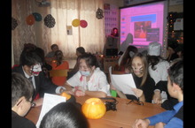 Сегодня в школе прошел праздник, которого давно ждали обучающиеся,-Halloween. Учитель английского языка Ильгина Ильдусовна рассказала историю возникновения праздника, о его символах и много еще интересного, отраженное в презентации. К мероприятию учащиеся подготовили газеты, рисунки, костюмы, декорации. Это было настоящее шоу!