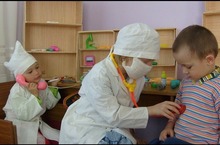 27 март мәктәпкә хәзерлек төркеме балалары рус телендә уеннар уйныйлар. Яңа гына тегелгән доктор киемнәре балаларда уенга теләк тудыра.