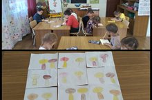 "Рәсем шөгыле" Көз “Гөмбә рәсеме ясау” 19.09.2023 Рәсем ясау алымнарын өйрәтүне дәвам итү;төсле буяулар белән эш алымнарын аңлату;әйберләрнең формаларын дөрес ясарга, төсләрне сайлый белергә өйрәтү, табигатькә сак караш тәрбияләү максатыннан балаларыбыз белән гөмбәләр ясадык.