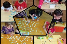 "Уеннар" 03.05.2023 Мәктәпкәчә яшьтәге балага иң табигый һәм төп чара ул- уен. Балалар бакчасында иртәдән кичкә кадәр минутларына кадәр төгәл үтәлә торган режимда, уен элементлары катнашмаган мизгел юктыр ул. Балалар бик теләп- дидактик, хәрәкәтле, өстәл уеннарын уйныйлар. Бүген дә без үз чиратыбызда балалар белән пазллар төзедек. Алар уен барышында бер-берсенә ярдәм иттеләр һәм дус булдылар.