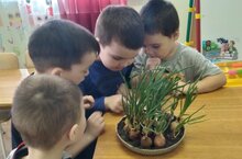 Балалар белән тәҗрибә үткәрү максатыннан балчыкка суган утырттык. Һәркөн аның үсешен даими күзәтеп, карап тарабыз. Төпләрен йомшартабыз, су сибәбез, үскәнен күзәтәбез. Балалар бу эшне яратып, бик теләп башкаралар. Суганның файдалы яшелчә икәнен балаларыбыз белеп үсәләр.