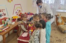"Без кибеттә" уенын уйнау 20.12.2022 Балаларның уенчыклар һәм ашамлыклар турындагы белемнәрен киңәйтү, тәрбияче сорауларына җавап бирү осталыгын формалаштыру, уенчык, ашамлык исемнәрен һәм аларның эш-хәрәкәтен белдерә торган сүзләр хисабына сүз байлыгын арттыру; тыңлау һәм сорауларга җавап бирү теләген үстерү; сөйләм этикетының гади формаларын (исәнләшү, саубуллашу) кулланырга гадәтләндерү, уенчыкларга сакчыл караш тәрбияләү максатыннан кечкенәләр төркемендә "Без кибеттә" уенын уйнадык.Уен балаларга бик ошады.