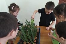 "Суганның үскәнен күзәтү" 04.04.2022 Берничә атна элек балалар белән суган утырттык. Һәркөнне аны карап, су сибеп, ничек үскзнен күзәтеп тордык. Балалар кызыксынып, бу эшне бик теләп , яратып башкардылар.