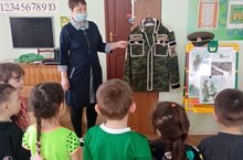 "Солдат киемнәре белән танышу" 24.02.2022 Балаларда армия, ватанны саклаучылар турында күзаллауны кинәйтү,хәрбиләр һөнәренә хөрмәт, патриотлык хисләре тәрбияләү,туган илне, аның тынычлыгын, иминлеген саклауның никадәр авыр, ләкин мактаулы хезмәт икәнлеген төшендерү максатыннан зурлар төркеменә йөрүче балалар белән солдат киемнәре белән таныштык.