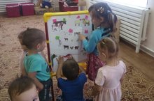 "Балаларны йорт хайваннары белән таныштыру" 07.10.2021 Балаларны йорт хайваннары белән таныштыру, аларда хайваннарны ярату хисе тәрбияләү максатыннан кечкенәләр төркеменә йөрүче балалар йорт хайваннары белән таныштылар. Өйләрендә булган хайваннар турында сөйләделәр, төсләрен танырга, зурга кечкенәгә бүлергә өйрәнделәр.