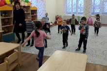 Хәрәкәттә бәрәкәт. 17.01.2018 Тәрбияче биргән төрле биремнәрне үтәп, зал тирәли борылышлар ясап, колоннада берәрләп йөрү.