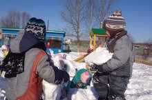 Язнын беренче коннэре булса да кар бабай ясарга уйладык . Бу эшкэ нэнилэребез дэ телэп катнаштылар . Зурлар ясаган кар йомарламнарын ,алар узлэренчэ матурлыйлар,шомарталар. Шулай итеп алар беренче хеэмэт тэрбиясе алалар.