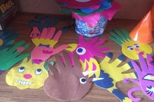 Кул эшлэре. Буген кисеп- ябыштыру дэресе булды . Мэктэпкэ хэзерлек торкеме балалары матур итеп коз темасына карата эш башкардылар. Узлэренен кул сурэлэрен тошереп, шуна остэп ябыштырып ясагач кызыклы кул эшлэре килеп чыкты. -