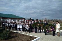 Транспарантлар, шарлар, чәчәкләр, герой бабайларыбызның фотоларын тотып укучылар авыл урамнары буйлап марш атлап үттеләр.