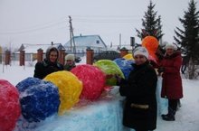 Мәктәп янында кардан сыннар ясау дәвам итә. Башлангыч класс укучыларына ярдәмгә әти-әниләр дә килде. Безнең тарафтан ясалган мультфильм герое һәм гаҗәеп торт бәйрәмгә чакырып тора. Мәктәп яны мәйданчыгы әкияти кар шәһәрчегенә охшап калды