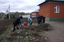 19 нчы октябрь көнне мәктәптә өмә узды. Тирә-якны чистарту, чүпләрдән арындыру, яшелчәләрне кышкы саклауга кую, карлыган-кураларны бәйләү кебек эшләр башкарылды. Орлыклар читартылды. Бакчаларда инде эш тәмамланды.