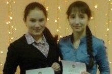 Поздравляем призеров республиканской олимпиады школьников по русскому языку и литературе ученицу 9 класса Салимзянову Гулину (русский язык) и ученицу 11 класса Фахрутдинову Илюзу (русский язык и литература)(учитель Фахрутдинова З.С.).