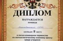 Награждается "Ашитбашская СОШ" занявшая 2 место в лично-командном первенстве по легкоатлетическому осенному кроссу среди учащихся