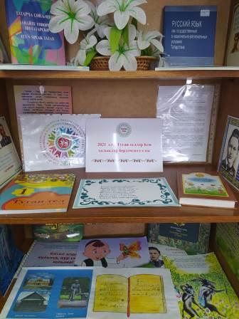 Мәктәп китапханәсендә “2021 нче ел-Туган телләр һәм халыклар бердәмлеге елы” уңаеннан кургәзмә төзелде.В школьной библиотеке оформлена выставка, посвященная году Год родных языков и народов.