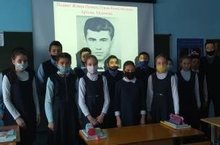 На классном часе ученики познакомились с биографией и подвигами героя –комсомольца А.Айдинова. Посмотрели презентацию. Его жизнь и подвиг на протяжении всех последующих лет является примером для подрастающих поколений Республики Татарстан.